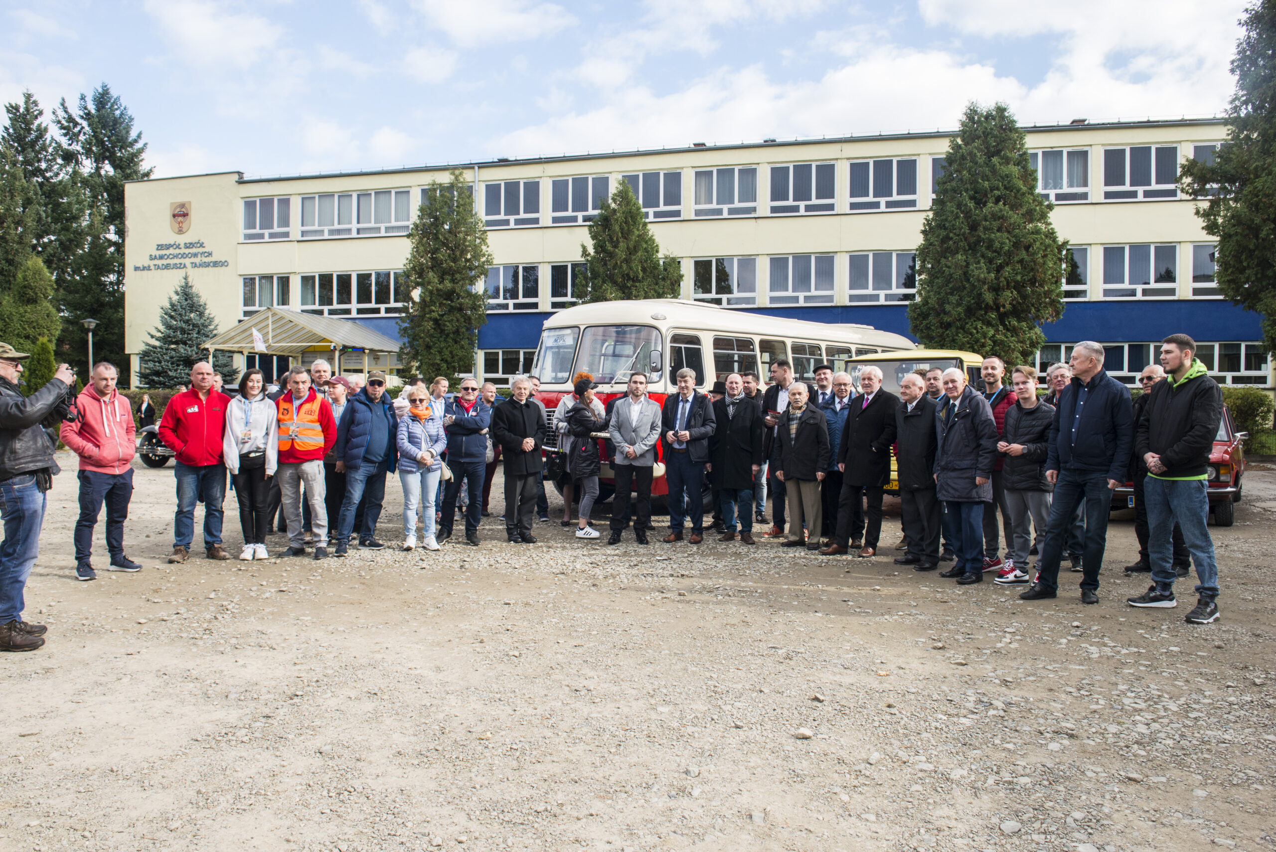 Później nastąpił przejazd indywidualny w odstępach czasowych do Zespołu Szkół Samochodowych, gdzie istniała możliwość zwiedzenia szkoły. Tam dołaczyły również dwa zabytkowe pojazdy, których właścicielem jest szkoła: Żuk i Fiat 125p. Punktem docelowym był Hotel Litwiński w Tęgoborzu. Tutaj na parkingu hotelowym nastąpiła prezentacja pojazdów uczestnikom I Zjazdu Absolwentów Sądeckiej Samochodówki. Dostępny był również symulator dachowania udostępniony przez MORD Nowy Sącz.